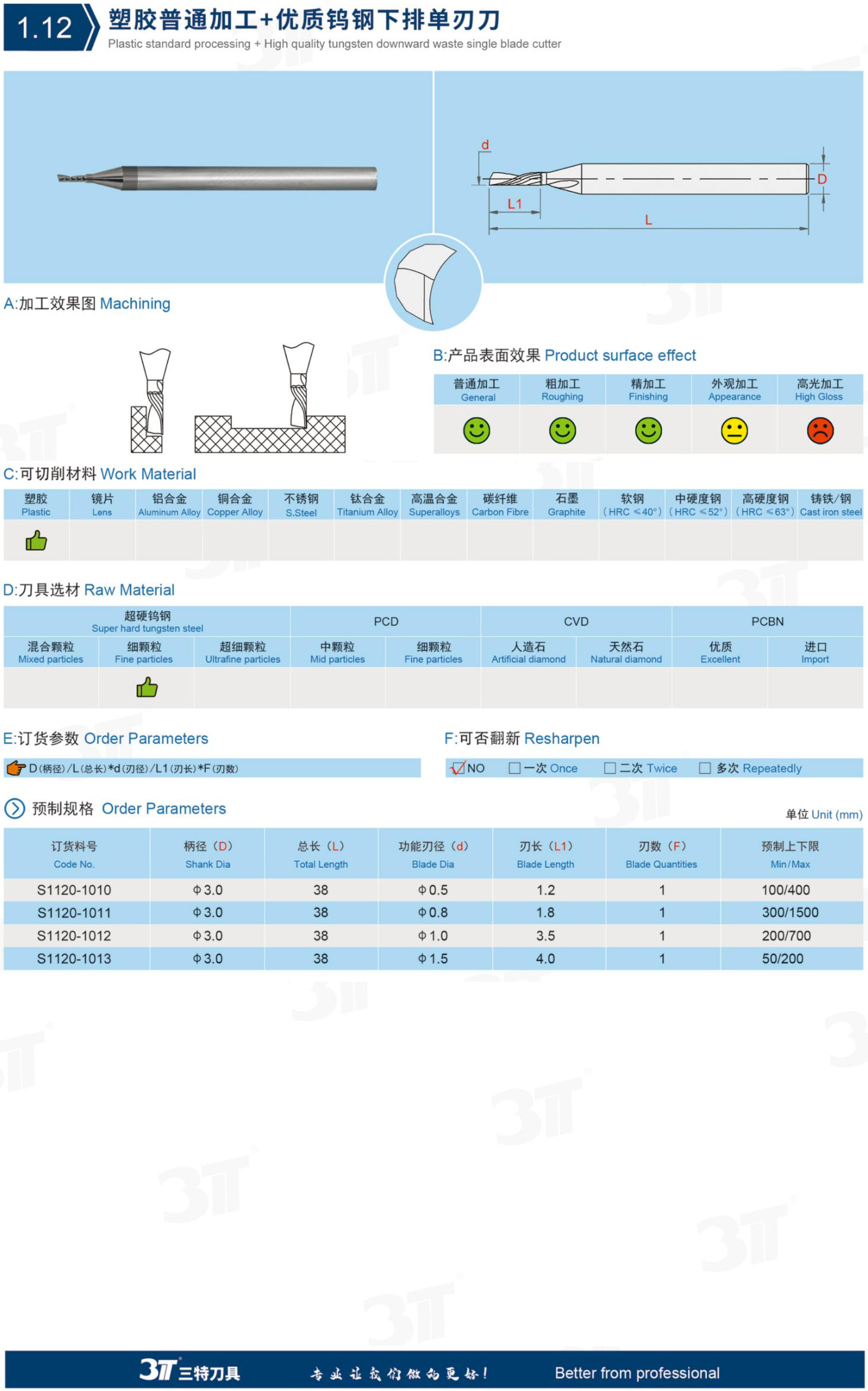 塑胶普通加工+优质钨钢下排单刃刀