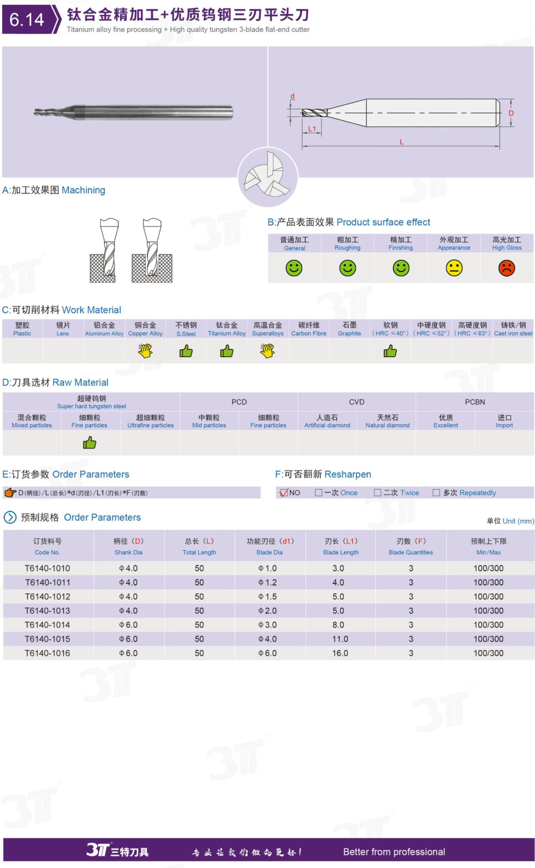 钛合金精加工+优质钨钢三刃平头刀